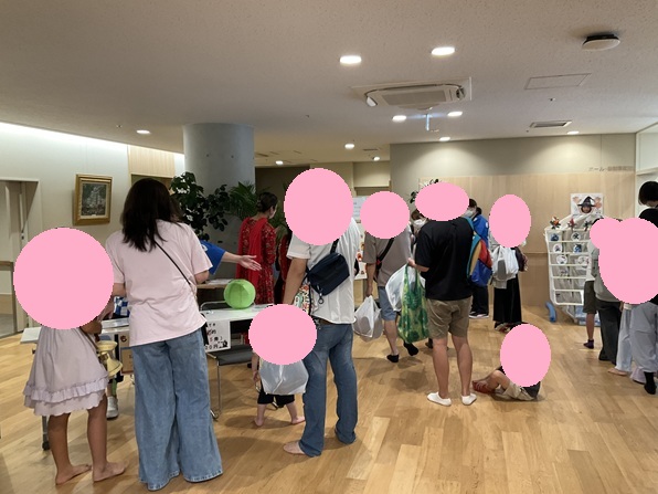 子供から大人までスナイパーになりきり高得点を目指します。今年はつつじヶ丘の新山施設長が魔女に変身したポスターを貼り、お顔に当てたら景品没収(笑)帽子とステッキの星に当てたらおもちゃ倍というルールで行いました。なかなか思うように当たらず悔しくて目に涙がたまってしまう子や、最初から高得点ではなく、確実に景品をゲットしておいてからの高得点を狙う子など沢山の来場者に館内は笑い声にあふれておりました。