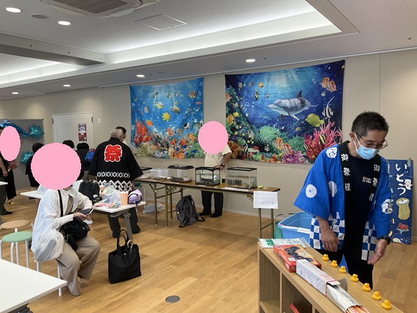 デンマークINNつつじヶ丘1Fホールでは「もぐらたたきコーナー」「射的コーナー」「移動水族館」を開催。